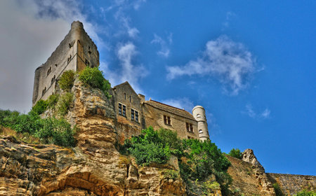 Beynac et Cazenac, France - August 18 2016: the historical old castle built in the 12th century