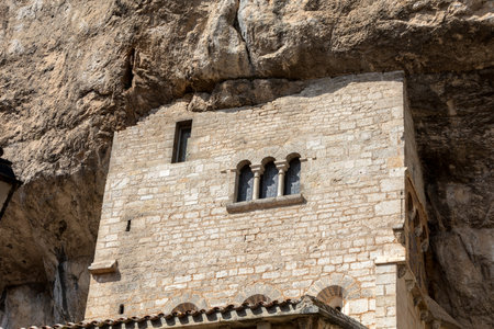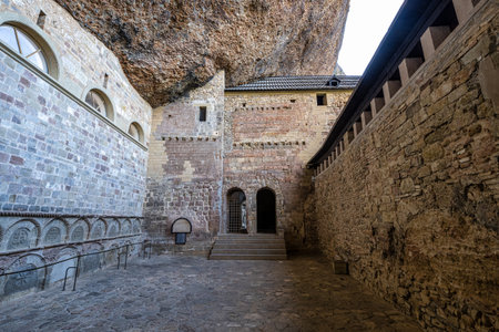 Jaca, Spain - Oct 25, 2022: The Royal Monastery Of San Juan De La Pena near Jaca. Huesca, Aragon. Spain. San Juan de la Pena Monastery with some romanesque ancient art