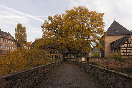 historic schlossplatz in frankfurt hoechst in autumn germany