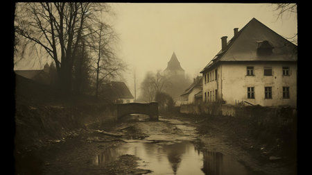 the abandoned streets of the czech republic are captured in this haunting polaroid retro photo, evoking a sense of eerie desolation and mystery, with dark tones and faded colors that transport viewers to a forgotten era of eastern european history. ai generated