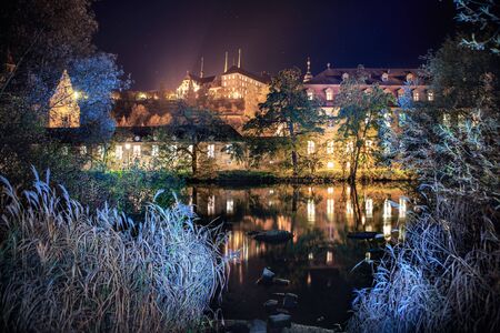 Regnitz river view of Bamberg Town by night, Bavaria, Germany