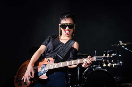 Woman guitar player during concert