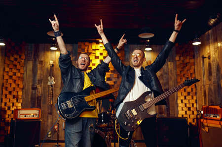 Two artists with electric guitars, rock band