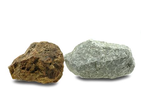 Pieces of different natural stones on a light background, eco concept, different texture, gravity, Natural mineral.