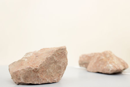 empty nature stone podium minimalism on light beige background. Copy space, place for text