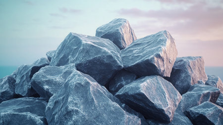 AI Generated. Massive Pile of Gray Rocks Under a Clear Sky - A Stunning Industrial Landscape