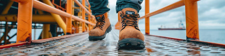 The close up picture view of the engineer is working inside the factory and focus on the boots, the engineer require skill like the technical experience, management and the communication skill. AIG43.