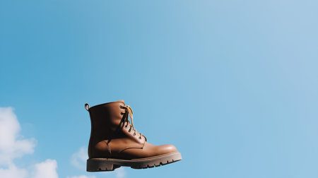 Pair of brown boots on blue sky background with copy space.