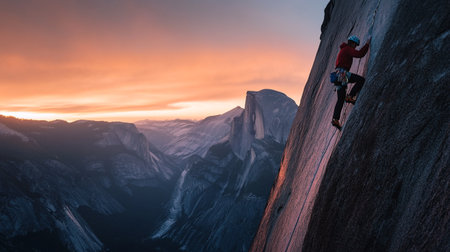 Climber ascending a challenging wall in Yosemite National Park, California, USA