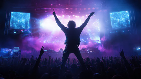 An energetic concert, during which the crowd spreads its hands. Generative AI