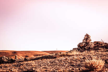 Closeup to red mulch mound lifted in the sky. Mars idea background