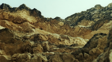 A close-up photo of a rocky terrain with jagged and uneven rocks