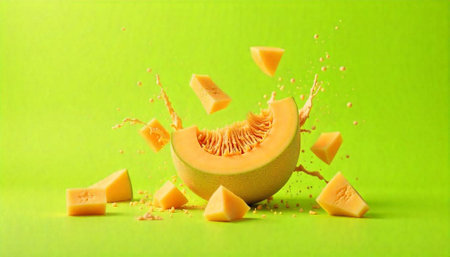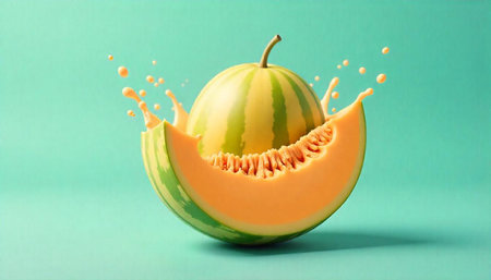 AI Generated. Fresh and Vibrant Cantaloupe Half on Mint Background