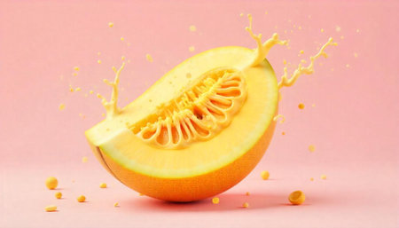 Sliced Cantaloupe with Liquid Splash Against Pink Background Still Life