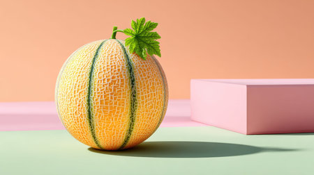 Juicy cantaloupe sits against a soft pastel background, revealing its sweet orange flesh and vibrant seeds, perfect for summertime meals and snacks.
