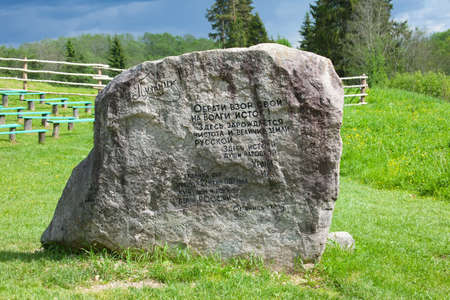 TVER REGION, RUSSIA - JULY 02, 2016: Boulder on the source of the Volga, Tver region, Russia