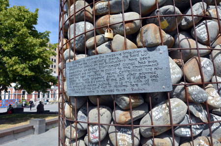 CHRISTCHURCH - DEC 04 2015:River stones sculpture in Cathedral square.It created in protest over the loss of democracy in Canterbury and the fears about how the Government manage water and environment