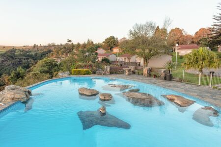 GRASKOP, SOUTH AFRICA - MAY 21, 2019: Swimming pool on the edge of a cliff at the Panorama Chalets and Caravan Park in Graskop