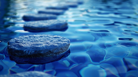 Zen path with stones in blue water, tranquility and serenity, calming nature vibe