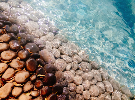 Sea stones in the sea water. Pebbles under water. Stones In Blue Water - Zen Concept