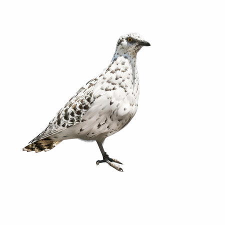 Captivating image of an isolated rock ptarmigan bird showcasing its delicate feather details against a pristine white background. Ideal for nature lovers.