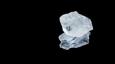 Raw halite mineral from Spain, commonly known as rock salt isolated on a pure black background