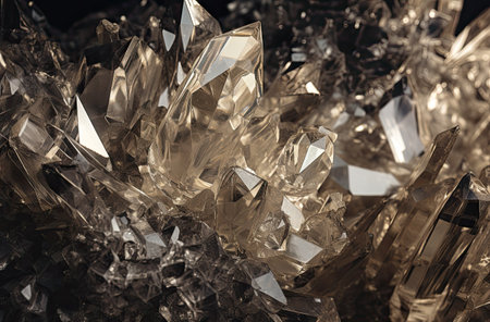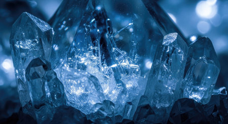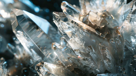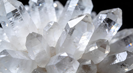 A mesmerizing close-up view of sparkling quartz crystals, showcasing intricate details and stunning reflections of light for an elegant natural touch.
