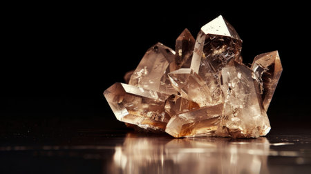 Quartz is a rare precious natural geological stone eremite on a black background in low key. Fashionable jewelry elegant decoration. AI generated.