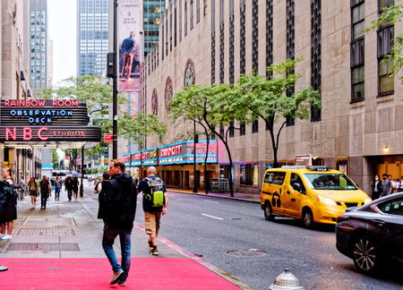 NEW YORK, USA, October 10, 2015: Unidentified people walking in front of Rockfeller Center building in Manhattan, New York.