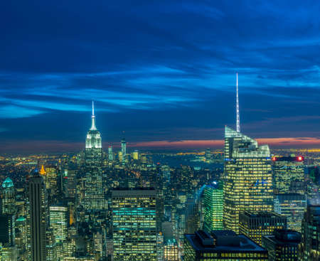 View from the Rockefeller Center on New York City Skyline on an evening.