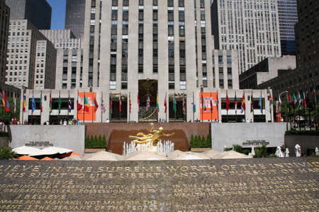 NEW YORK, NY - September 4th, 2017: flags and architecture at the Rockefeller plaza in front of the Rockefeller Center
