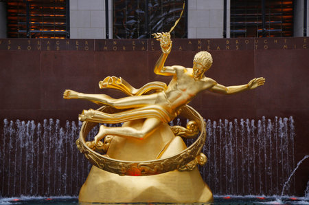 New York, USA - September 23, 2015: Statue of Prometheus at the Lower Plaza of Rockefeller Center in Midtown Manhattan