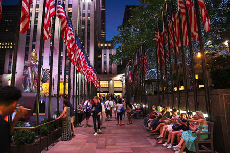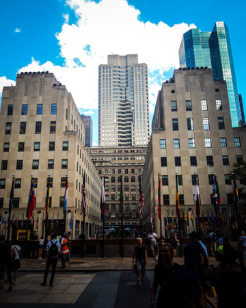 NEW YORK, NEW YORK - September 4th, 2017: detail of the street surrounding the Rockefeller Center in Manhattan, nyc with plenty of turists