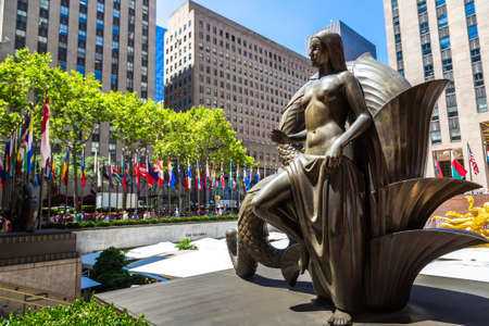 NEW YORK CITY - JULY 12: Maiden Statue near Rockefeller Center on July 12, 2012 in New York. Rockefeller Center is a complex of 19 commercial buildings covering 22 acres between 48th and 51st streets in New York City, United States. Built by the Rockefell
