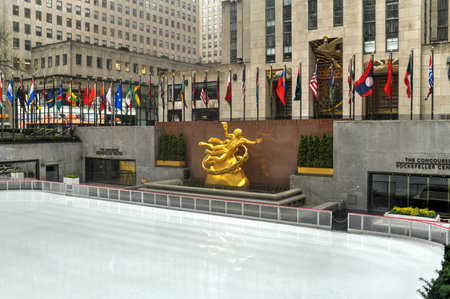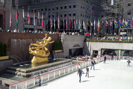 NEW YORK CITY, NY - MAR 30: Rockefeller Plaza ice rink on March 30, 2014 in New York City. Declared a National Historic Landmark in 1987, it is a complex of 19 commercial buildings
