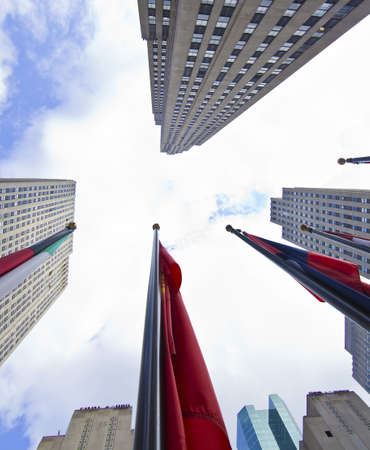 Rockfeller Center Building Perspective with flags Manhattan