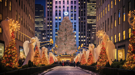 Rockefeller Center shines in the winter of New York., generative AI