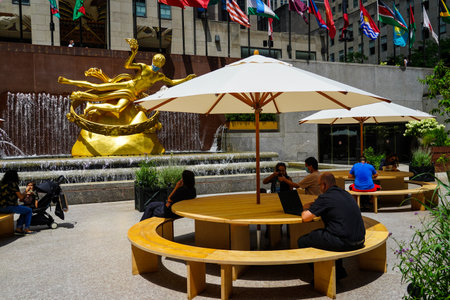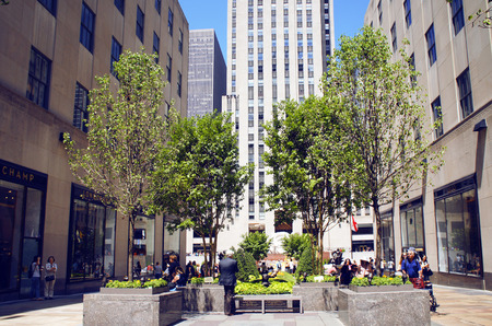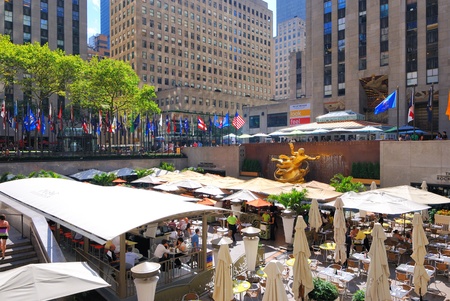 NEW YORK CITY - JULY 12: Lower Plaza near Rockefeller Center on July 12, 2012. Rockefeller Center is a complex of 19 commercial buildings covering 22 acres between 48th and 51st streets in New York City, United States. Built by the Rockefeller family, it