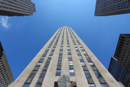 New York City, USA - July 2 2017 - Rockfeller Center, Art Deco building complex, situated between 5th and 6th Avenue, built between 1930 and 1939