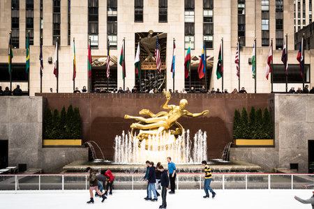 New York, USA, november 2016: The Rockfeller Complex of 14 buildings in the Art Deco style built in 1930 was the largest private building project at the time