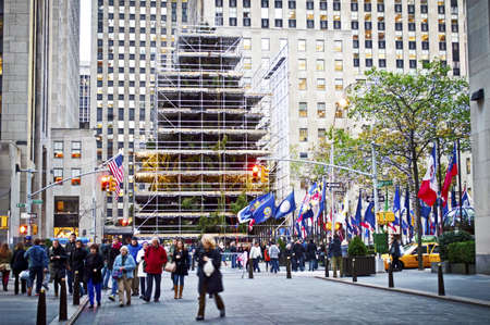 NEW YORK - NOVEMBER 19: Scaffolding surrounds the world famous Rockefeller Center Christmas Tree to install the lights on November 19, 2012 in New York City.