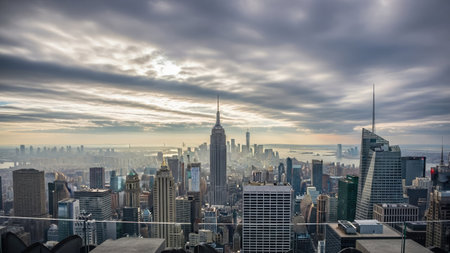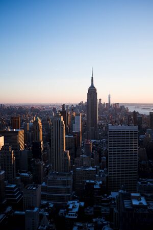 View from the Rockefeller Center on New York City Skyline on an evening.