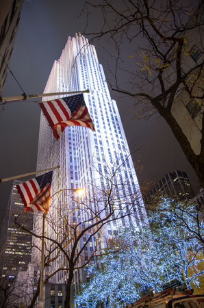 NEW YORK,USA - NOVEMBER 22, 2013: Rockefeller Center decorated for Christmas time in New York City.Rockefeller Center is one of the most famous landamarks in New York City
