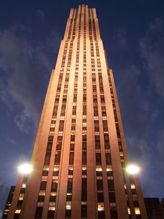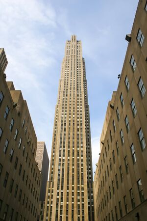 NEW YORK CITY, USA - MARCH 17 : A low angle view of the 30 Rockefeller Center skyscraper, the centerpiece of Rockefeller Center in Midtown Manhattan on March 17th, 2005 in New York City, USA.