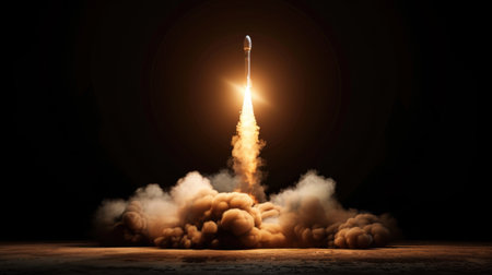 Embark on a journey of innovation and ambition with this captivating image. A rocket launch symbolizes the spirit of startups and the dynamic nature of the business world. This concept captures the excitement and determination that drive entrepreneurs and their quest for success. The fiery propulsion of the rocket represents the power of ideas and the drive to reach new heights. Perfect for projects related to startups, entrepreneurship, business concepts, technology, innovation, and the pursuit of ambitious goals