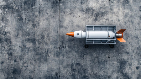 Cart carrying a rocket launcher, seen from above, with a clean background offering plenty of copy space.