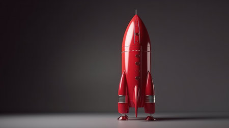 A red rocket model on a neutral gray background. Created with Generative AI technology