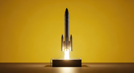 A rocket is sitting on top of a red background, AI