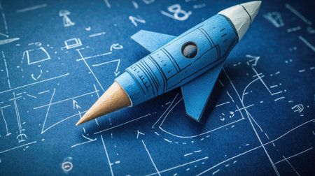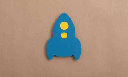 A blue rocket cut out of paper -business start-up idea