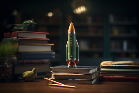 Stacked Books and space rocket on top of that